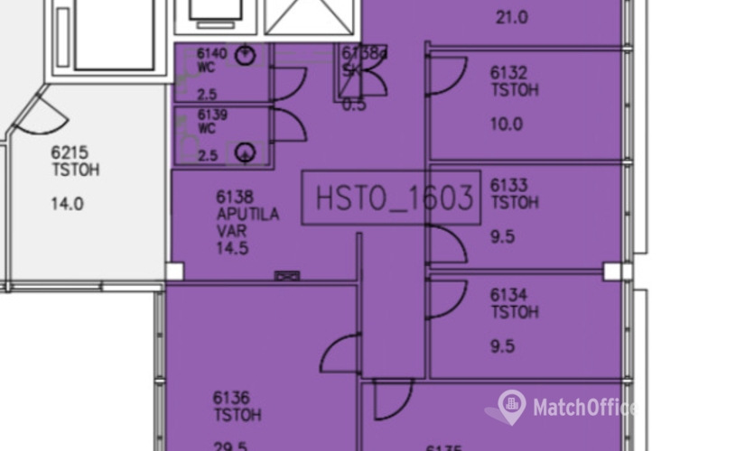 Tämä 150,5 m² toimistotila sijaitsee kiinteistön ylimmässä, 6. kerroksessa. Toimistossa on erikokoisia huoneita, aulatila sekä omat wc-tilat.