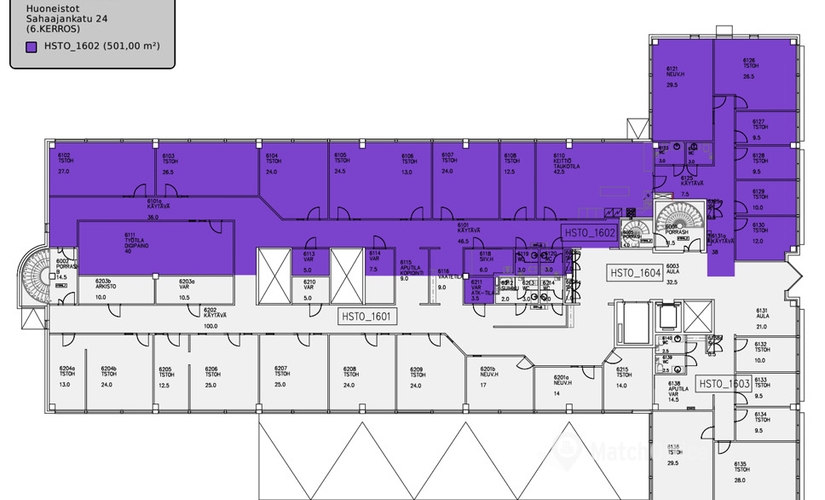 Tämä 501 m² toimistotila sijaitsee kiinteistön ylimmässä, 6. kerroksessa. Tila on huoneellinen, mutta sitä on mahdollista muunnella vuokralaisen tarpeiden mukaan.